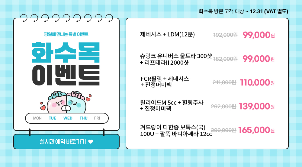 블프E) 버츄RF (얼굴전체) + 리쥬란 시너지 스킨부스터 + LDM (6분) + 모델링