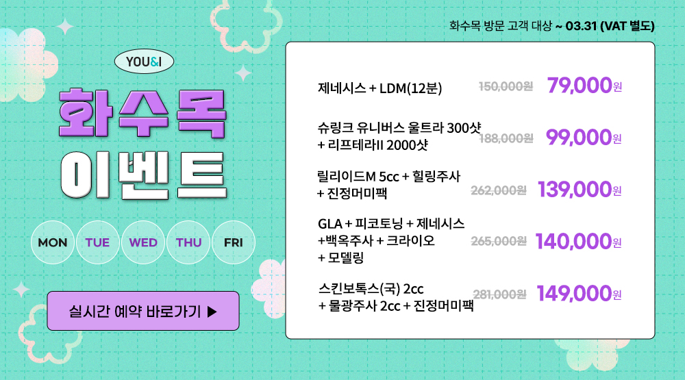 원데이pk) 피코프락셀 + 물광주사 5cc + MGF앰플(아기주사) + 크라이오 + 모델링 2회