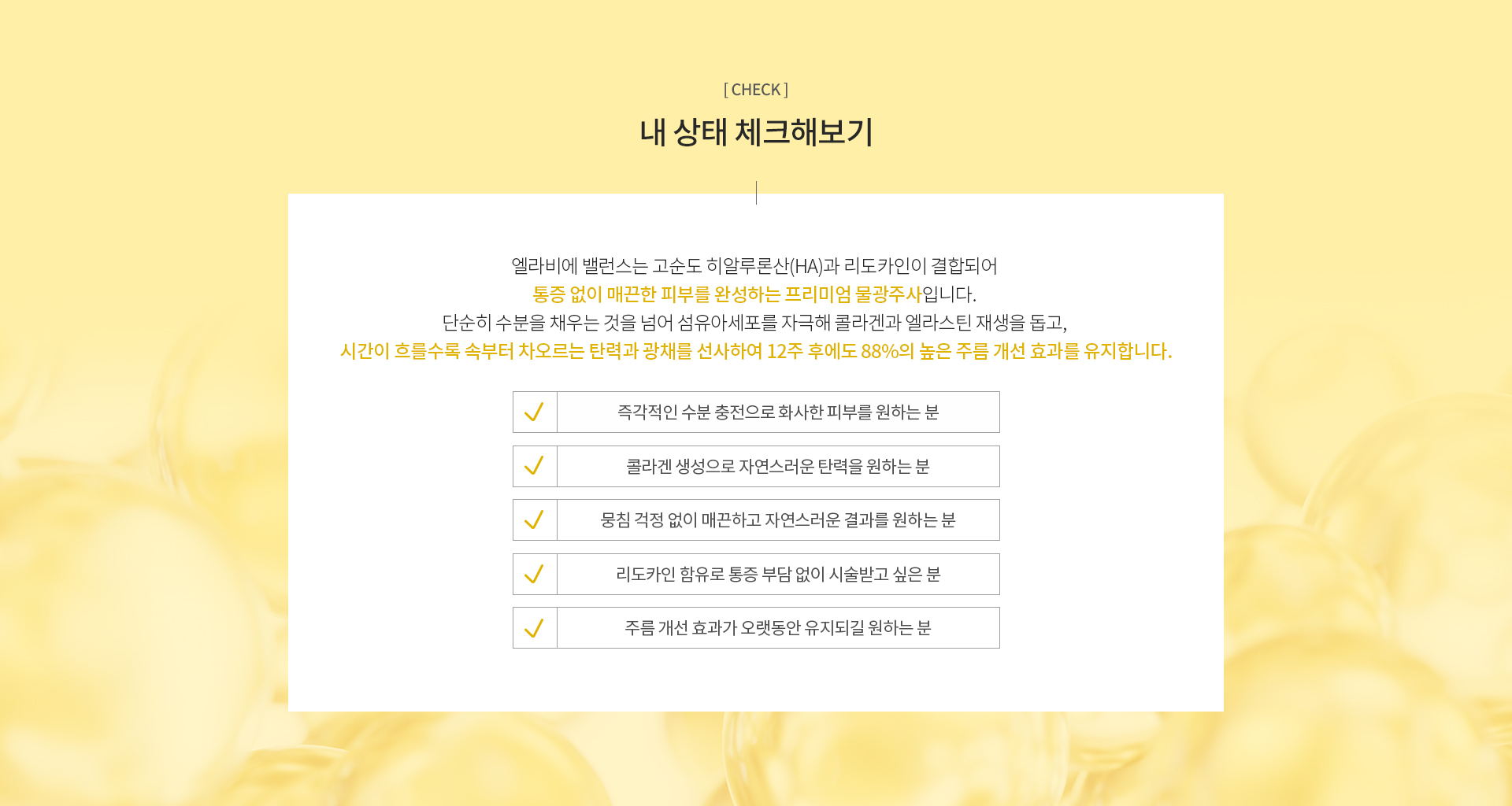 엘라비에 밸런스는 고함량 히알루론산을 피부 진피층에 직접 주입하여 속건조를 잡고 은은한 광채를 만드는 물광 주입 시술입니다.